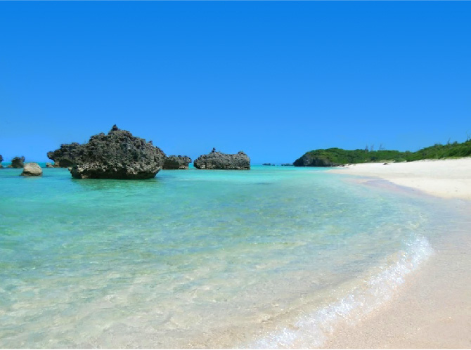 白い砂浜とエメラルドグリーンの海がとても美しいビーチです。